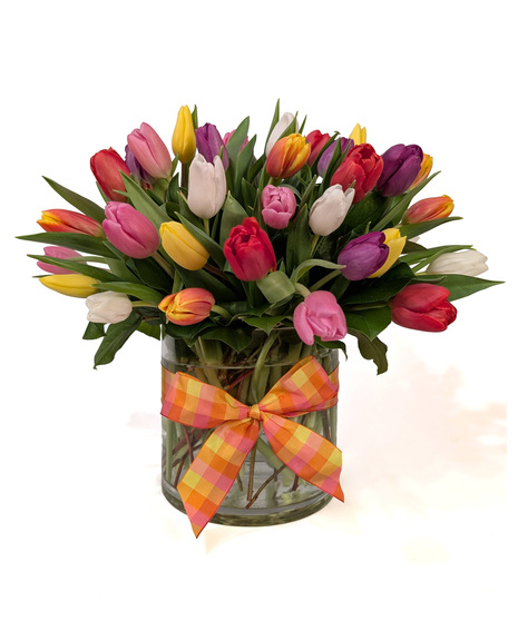 Spring Fling Colorful Tulips Tied With a Bow